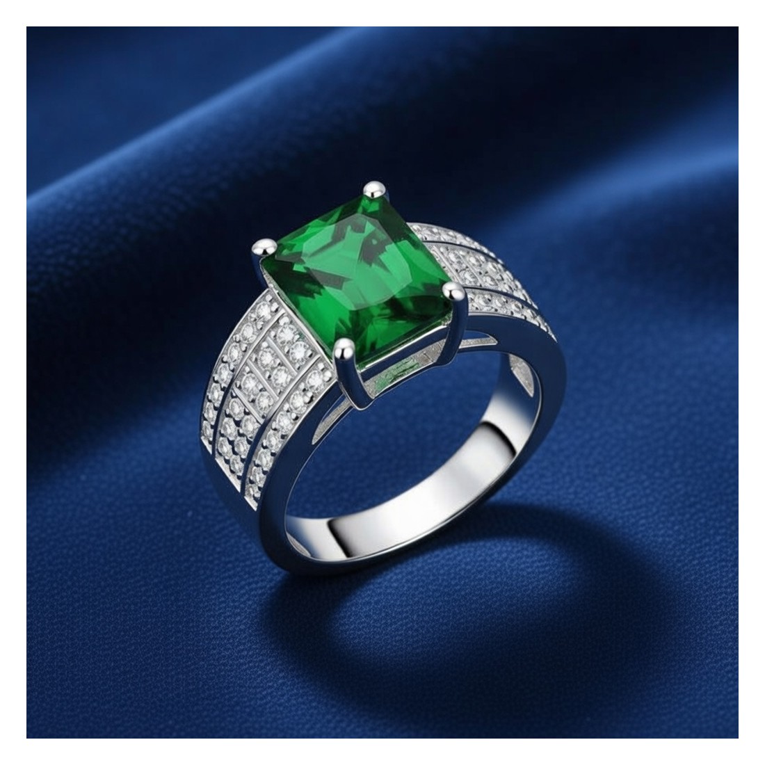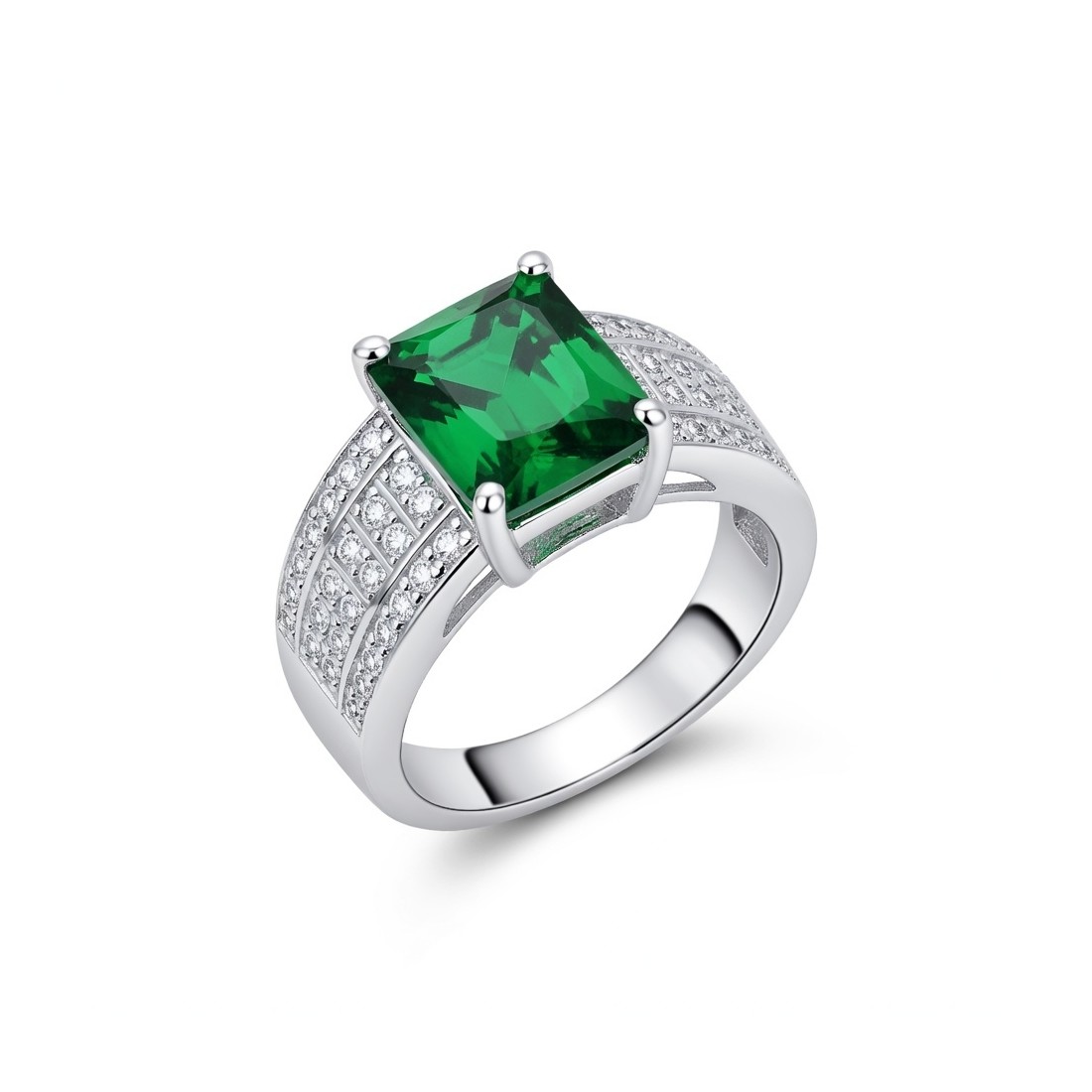 SORTIJA PLATA DE LEY CIRCONITAS ESMERALDA