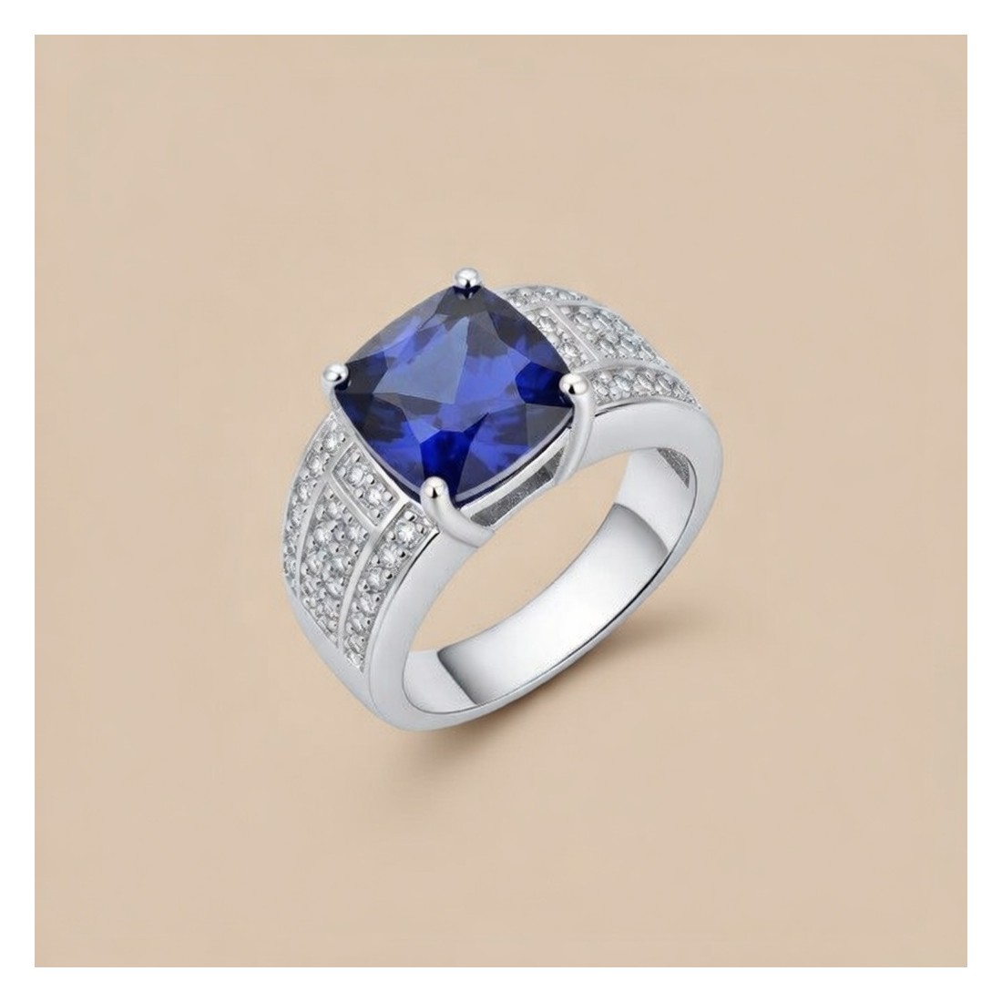 SORTIJA PLATA DE LEY CIRCONITAS ZAFIRO AZUL