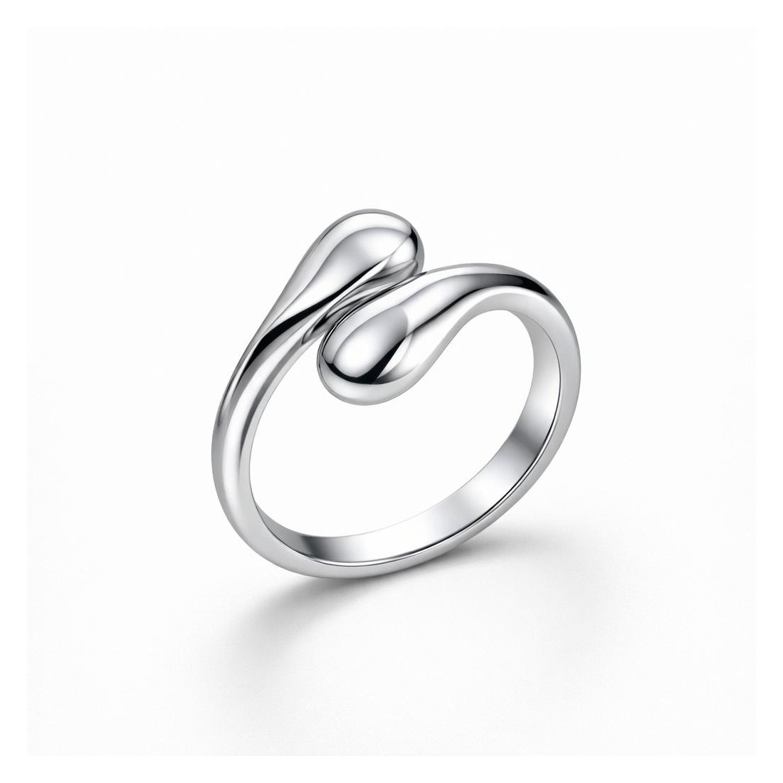 Anillo de Plata de Ley 925 con diseño de doble gota cruzada y acabado pulido espejo. Elegancia fluida para llevar sola o en conjunto.