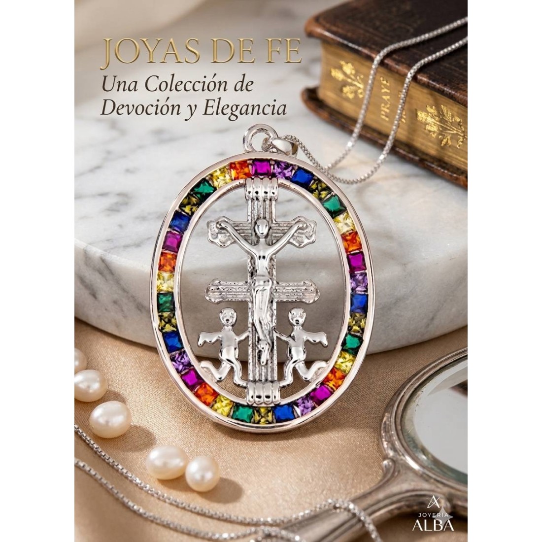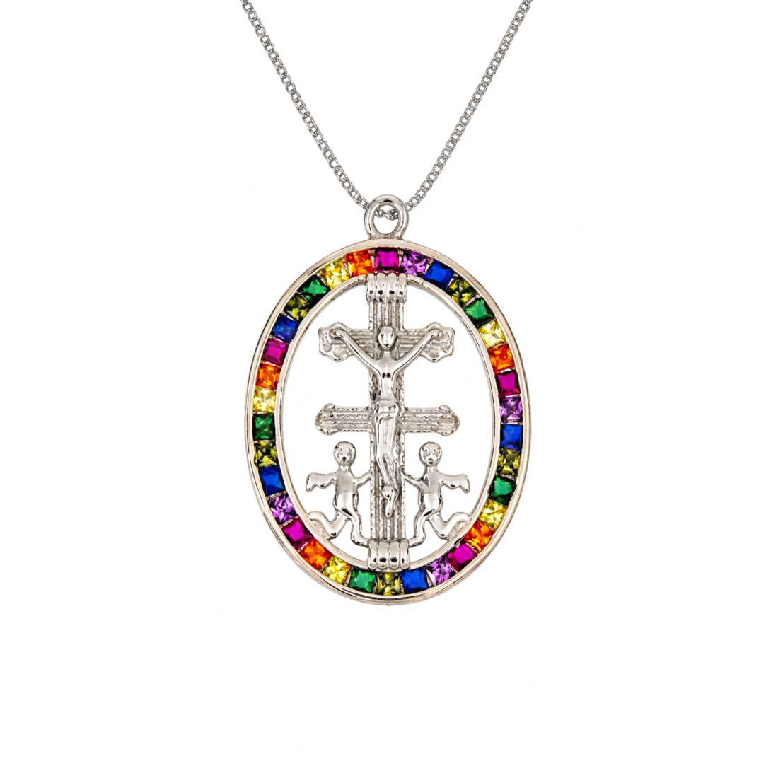 Gargantilla de la Cruz de Caravaca en plata de ley 925 con circonitas, una joya cargada de significado espiritual y protección. Su diseño elegante y brillante la convierte en un complemento perfecto para el día a día o en un regalo especial con valor simbólico.