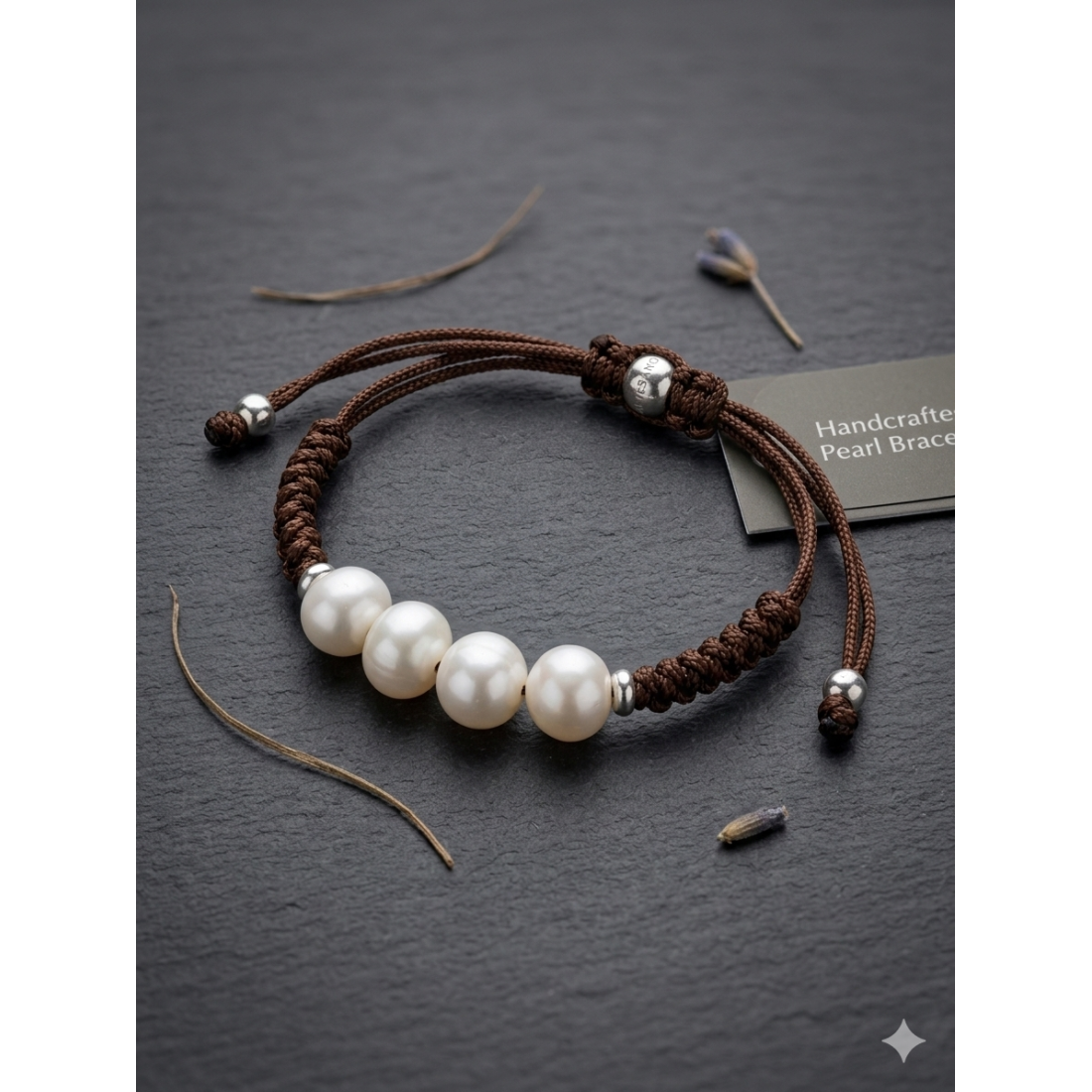 PULSERA MACRAMÉ PLATA DE LEY Y PERLAS...